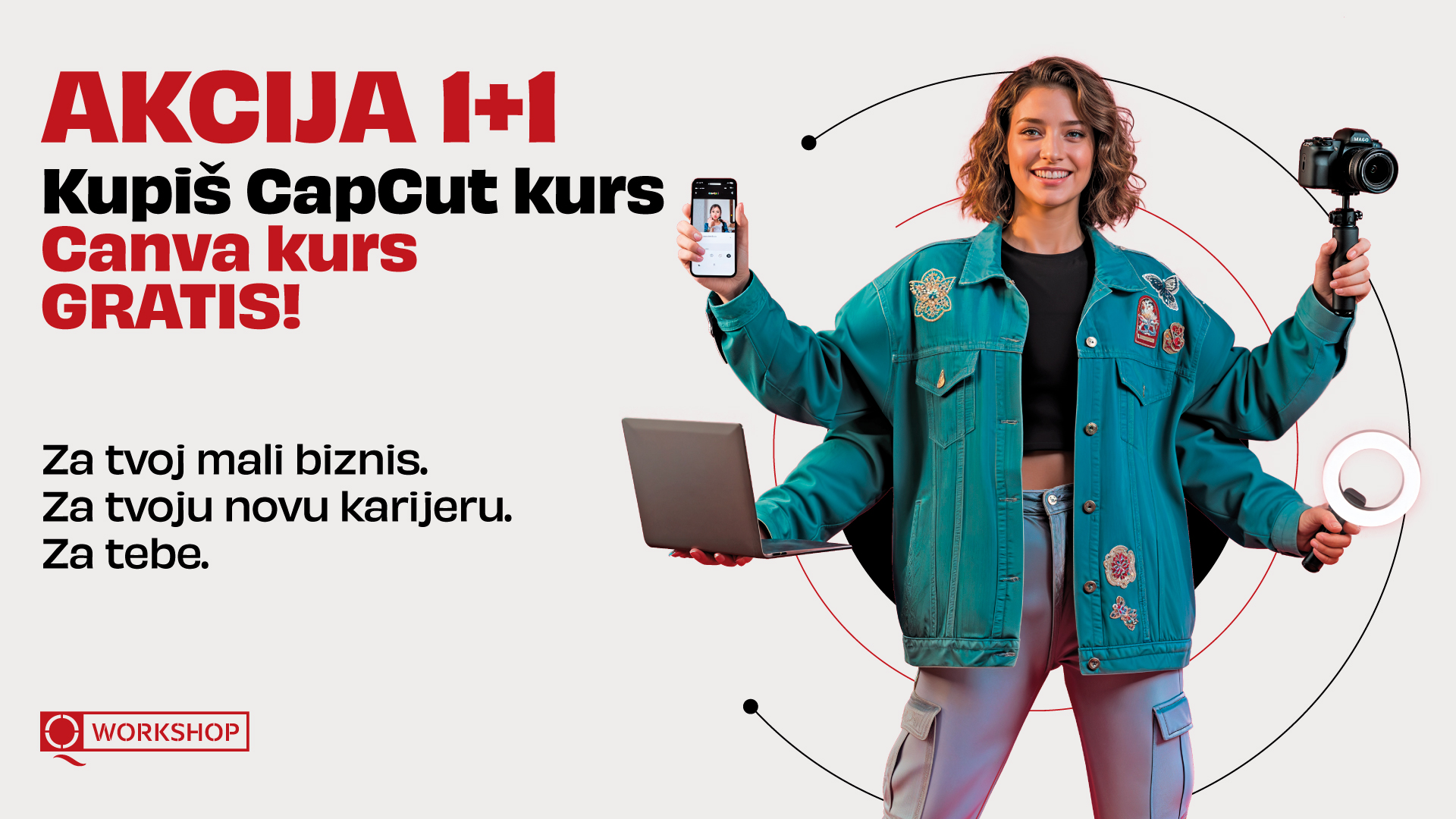 Upravo zbog toga su u Q Workshopu spojili dva kursa koja su danas među najtraženijim kada je riječ o digitalnim vještinama – kurs za kreiranje short form videa pomoću CapCut aplikacije i kurs dizajna za društvene mreže. Oba se sada nude u okviru jedne akcije, po cijeni jednog kursa, a cilj je vrlo jasan: pomoći malim biznisima da postanu konkurentni i vidljivi.